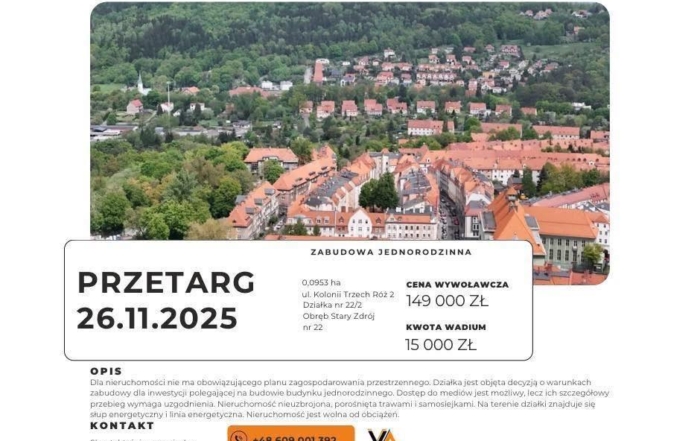 10.11.2025 Zainwestuj w przyszłość – przetargi na działki w Wałbrzychu! Już 26 listopada 2025 r. odbędą się przetargi na atrakcyjne działki pod zabudowę jednorodzinną w dzielnicy Stary Zdrój w Wałbrzychu. [...]