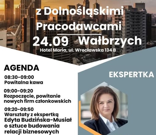 29.08.2025 Biznesowa Środa z Dolnośląskimi Pracodawcami już 24 września w Wałbrzychu! Dlaczego warto wpaść? poznasz przedsiębiorców z regionu i nawiążesz nowe kontakty dowiesz się, jakie możliwości daje członkostwo w Dolnośląskich [...]