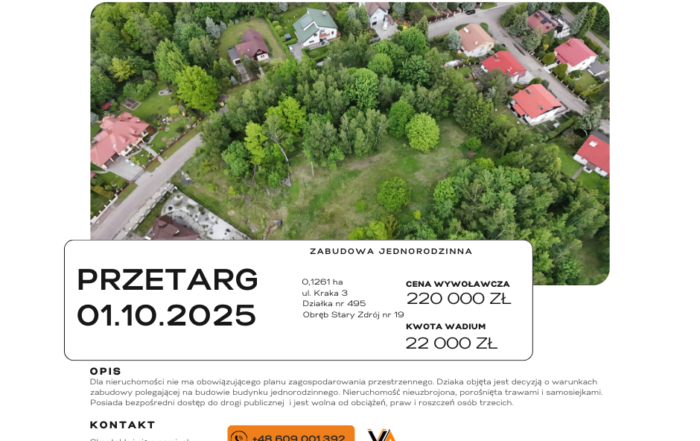 16.08.2025 Inwestuj w przyszłość – wyjątkowa okazja w sercu Wałbrzycha! Gmina Wałbrzych ogłasza przetargi ustne nieograniczone na sprzedaż atrakcyjnych, niezabudowanych działek budowlanych zlokalizowanych w dzielnicy Stary Zdrój – zaledwie kilka [...]